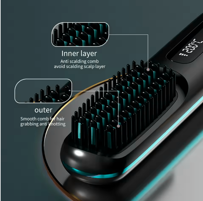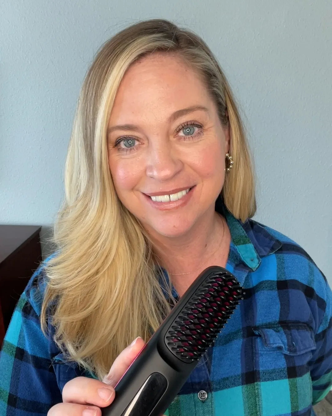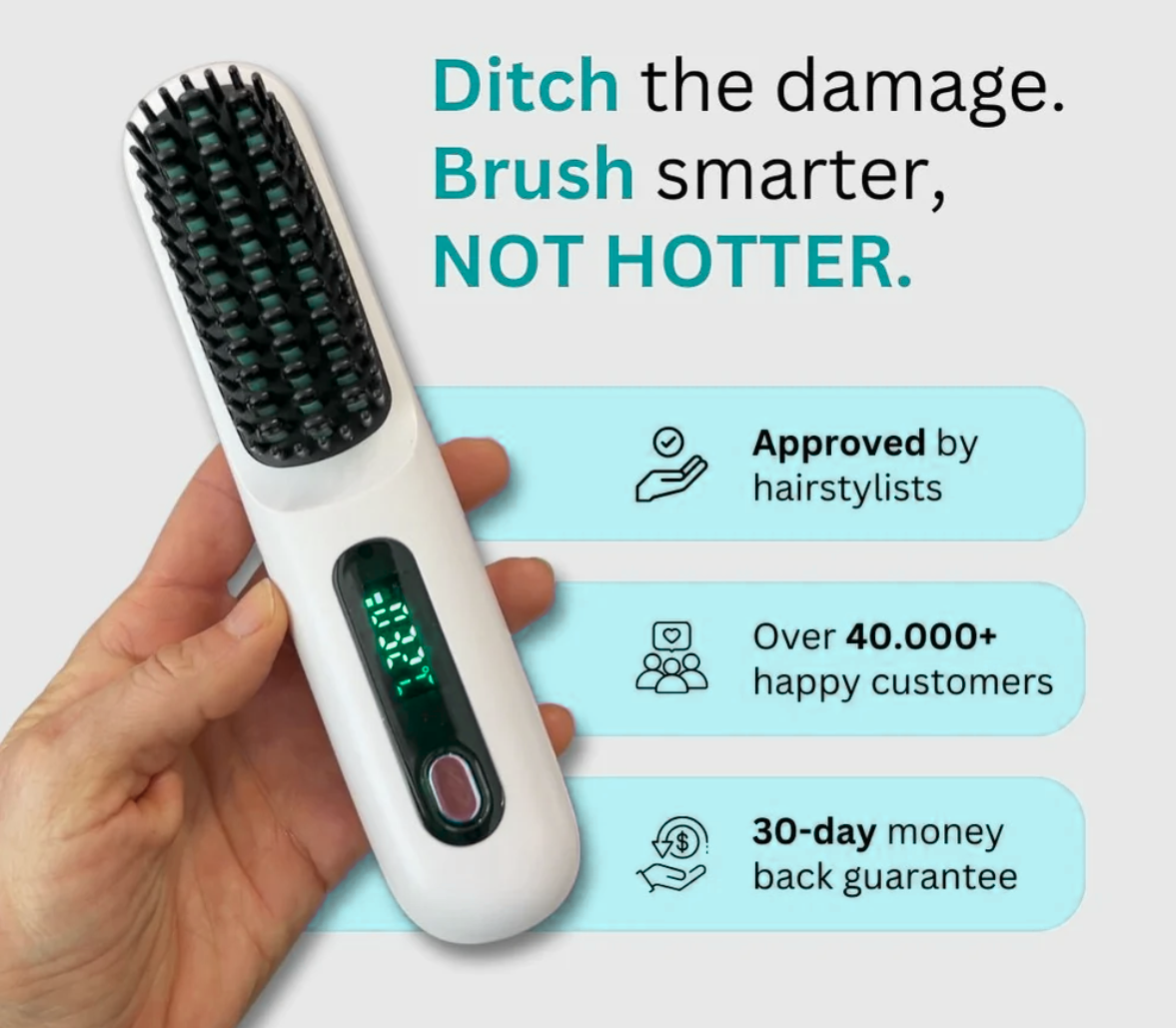 The portable straightening brush smooths your hair in minutes, wherever you are. Compact, rechargeable and anti-frizz, it delivers fast, smooth and shiny results, suitable for all hair types.