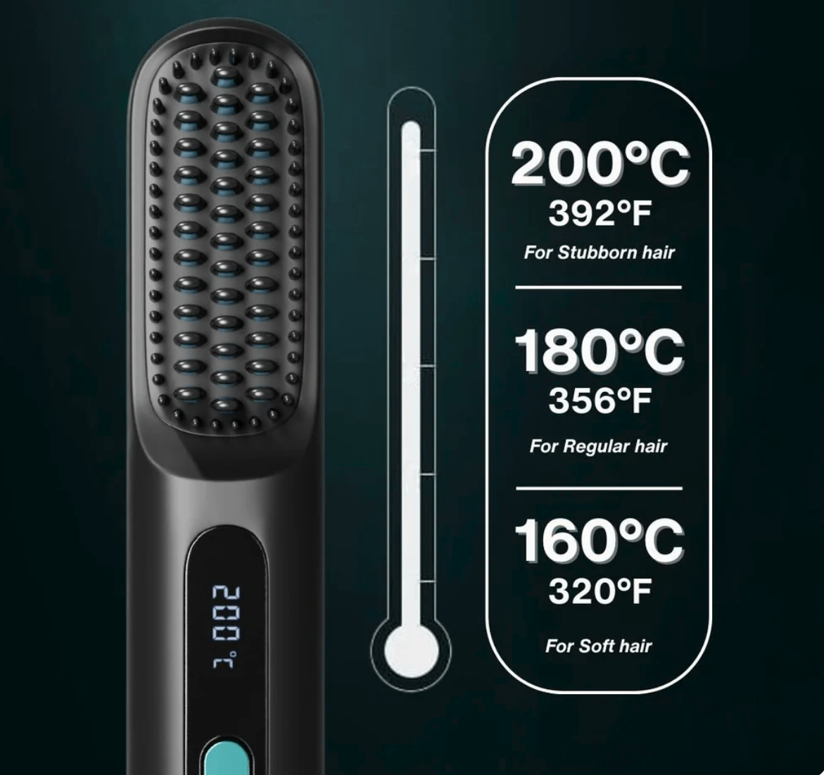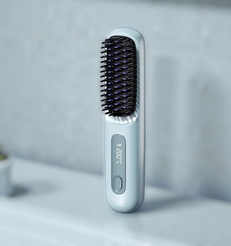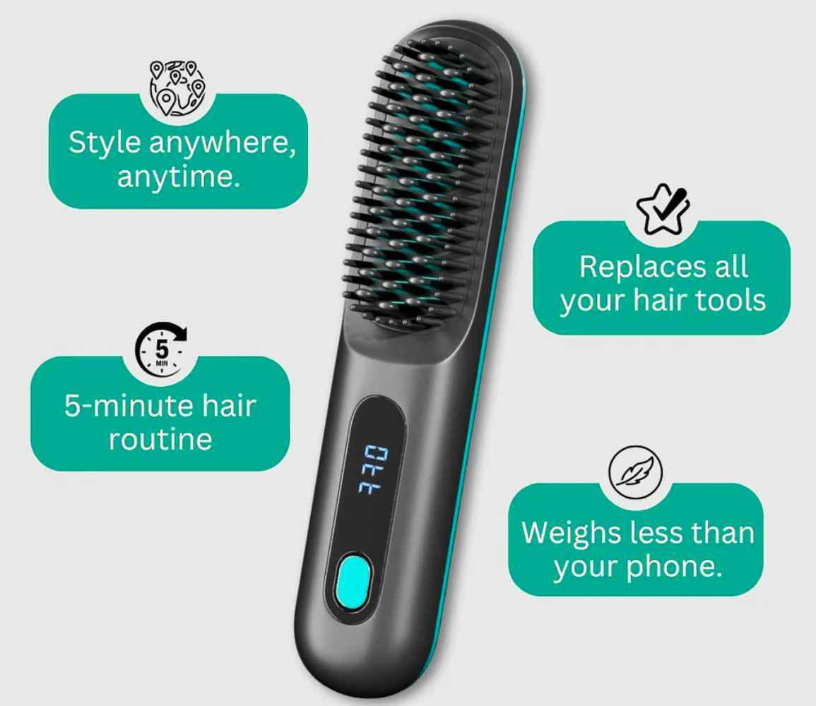 Our portable straightening brush smooths your hair quickly and safely wherever you are. Compact and lightweight, it fits easily in your bag for quick touch-ups in just minutes